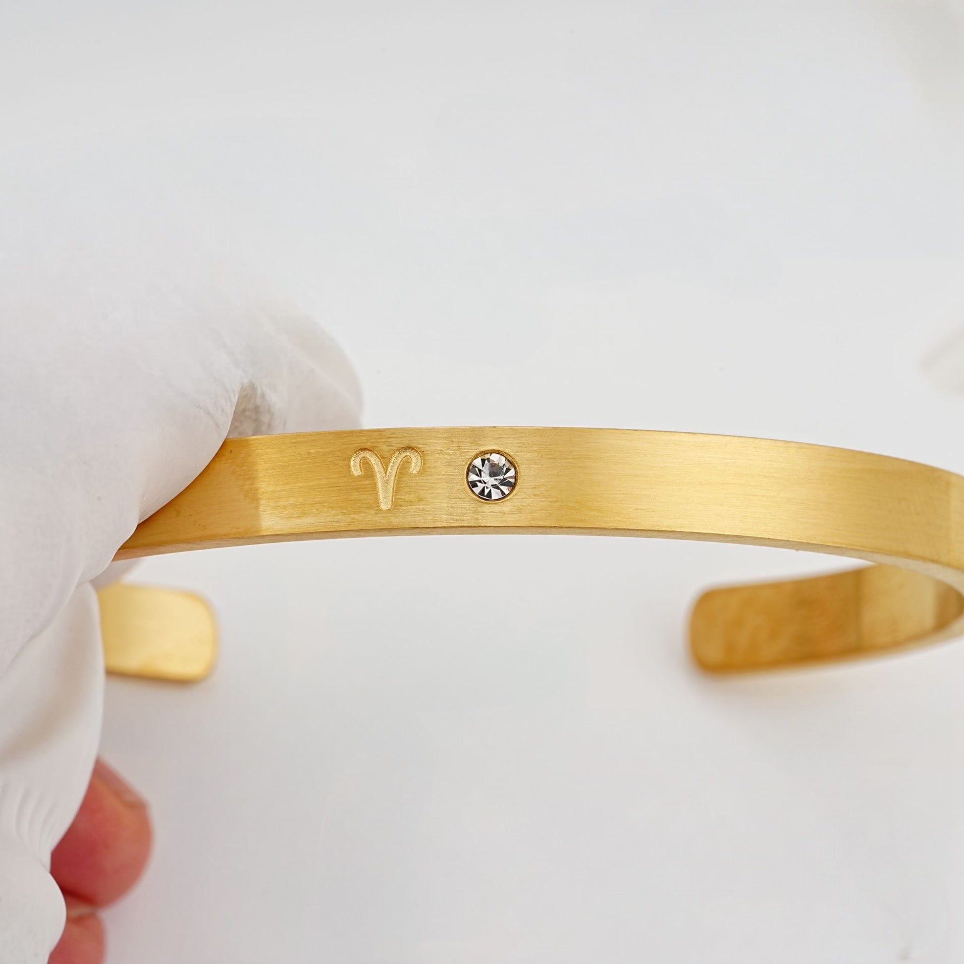 This personalized open cuff bracelet features your zodiac sign and birthstone — a subtle reminder of who you are and what you’re here to manifest.